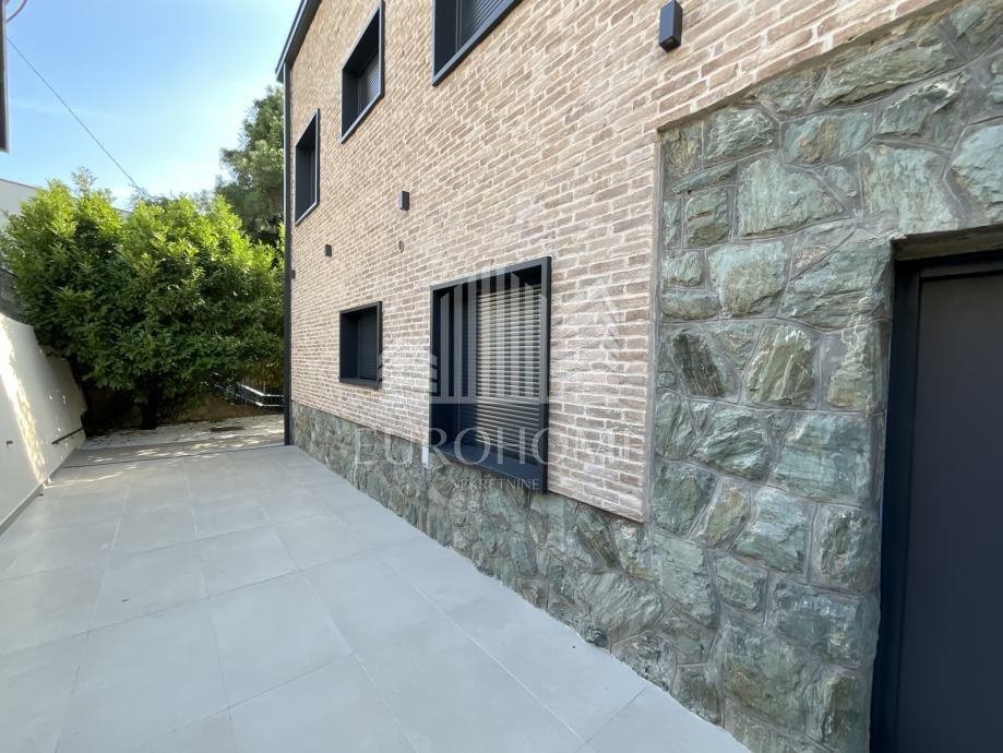 Opremljen je protuprovalnim zvučno izoliranim vratima, ugradbenim ormarom u hodniku, višeslojnim hrastovim parketom te centralnim etažnom plinskim grijanjem u svim prostorijama. U kupaonicama je sanitarna oprema visoke kvalitete.