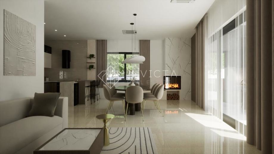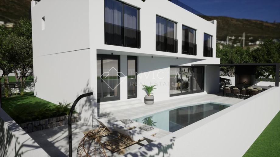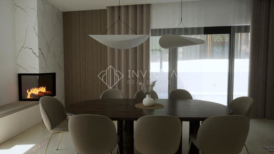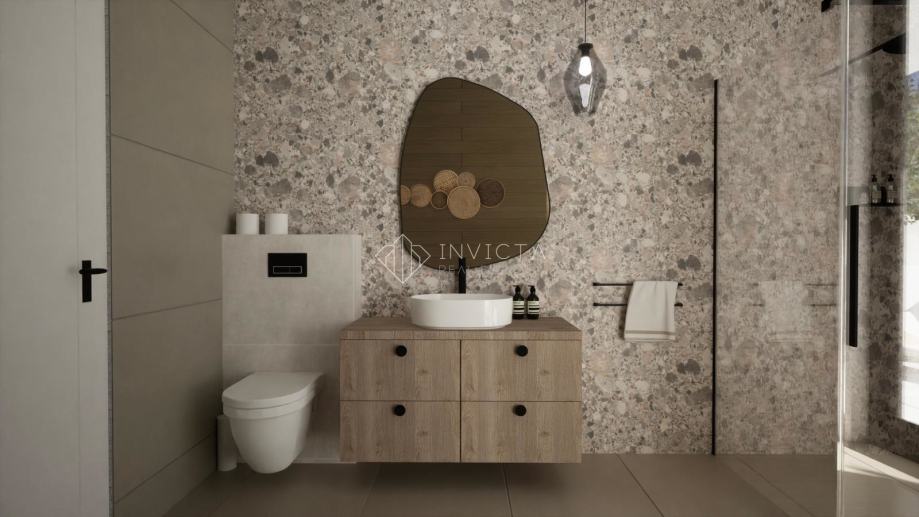 Ova vila se ističe svojim dizajnerskim i umjetničkim stilom koji odiše elegancijom i profinjenošću. Unutrašnjost je osmišljena s pažnjom na detalje, pružajući savršenu ravnotežu između funkcionalnosti i estetike. Kuća je opremljena modernim sustavom klimatizacije, a za trenutke opuštanja tu je i sauna. Impresivni bazen nudi osvježenje uz prekrasan pogled na more.