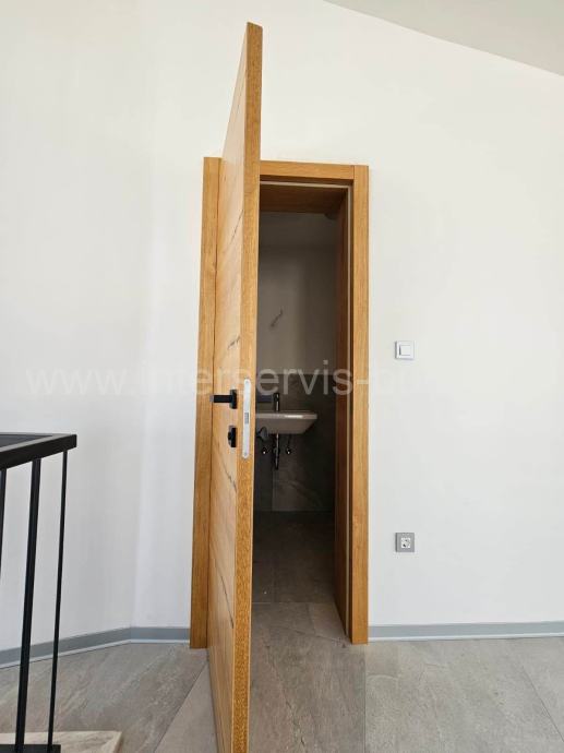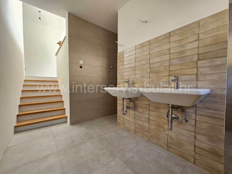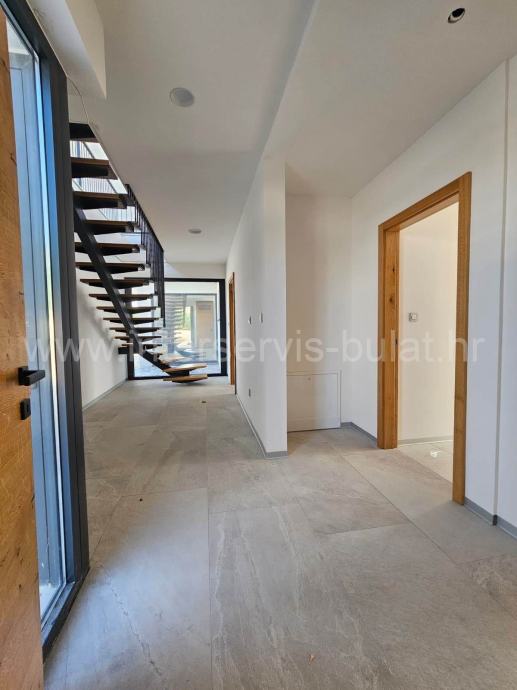 Gradnja je visokokvalitetn; kuća je opremljena s aluminijskom stolarijom, solarnim grijanjem tople vode, podnim grijanje, visokokvalitetnim pločicama i sanitarijama, protuprovalnim vratima...