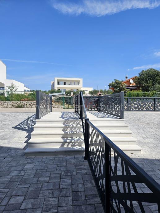 Na mirnoj lokaciji u Vodicama nalazi se luksuzna dvojna kuća sa bazenom. Prostire se na 194m2 korisne površine na dvije stambene etaže.