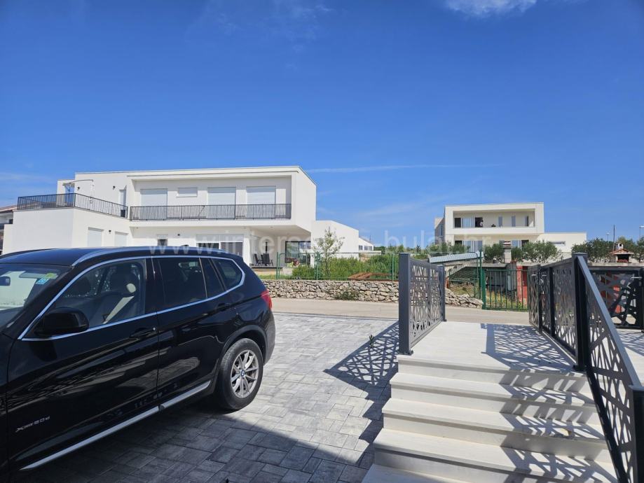 U prizemlju se nalazi strojarnica sa spremištem i tri spavaće sobe, svaka sa pripadajućom kupaonicom i izlazom na predivnu polunatkrienu terasu sa dvorištem. Unutarnjim stepenicama dolazimo do gornje etaže gdje je otvoreni prostor sa kuhinjom, dnevnim boravkom i blagovaonicom, toalet, izlaz na terasu (40m2) sa bazenom (26m2) sa koje se pruža predivan pogled na more i mjesto.