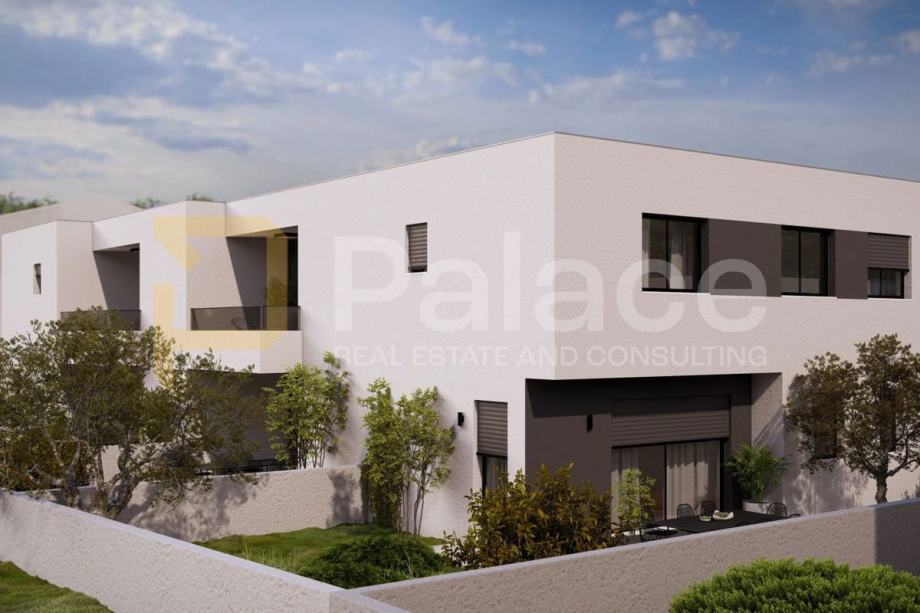 Na prodaju je luksuzna kuća na odličnoj lokaciji u Vodicama, dio duplex kompleksa od četiri kuće, od čega su tri na prodaju.