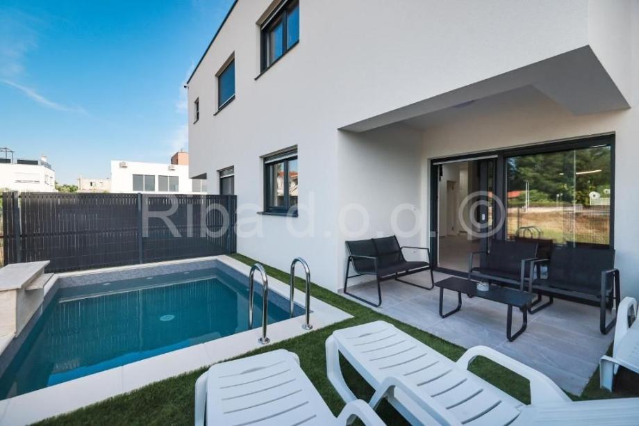 Svaka jedinica raspolaže vlastitim bazenom i uređenom okućnicom, što pruža potpunu autonomiju i ekskluzivnost. Blizina mora, mirno okruženje te kvalitetan raspored prostora čine ovu nekretninu iznimnom prilikom — bilo za cjelogodišnje stanovanje, luksuzni odmor ili kao investiciju s izvrsnim potencijalom povrata kroz turistički najam.