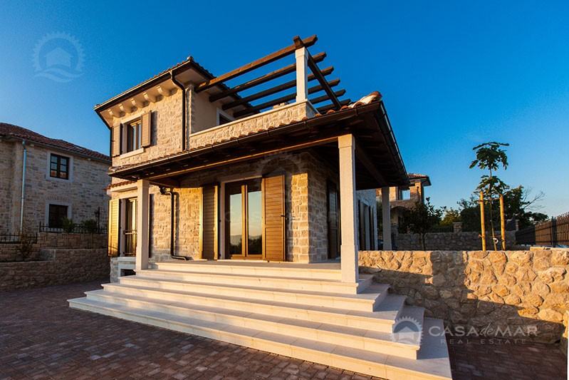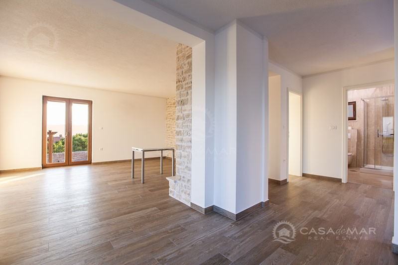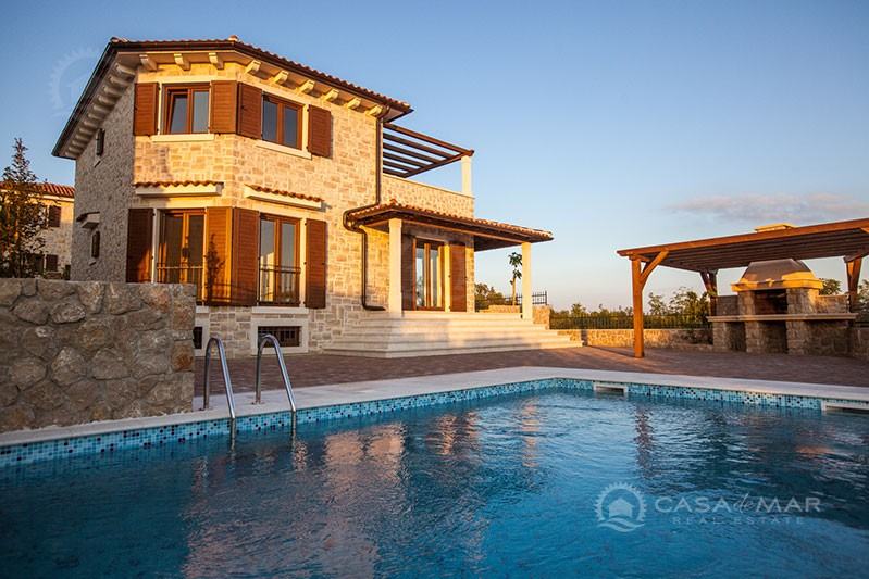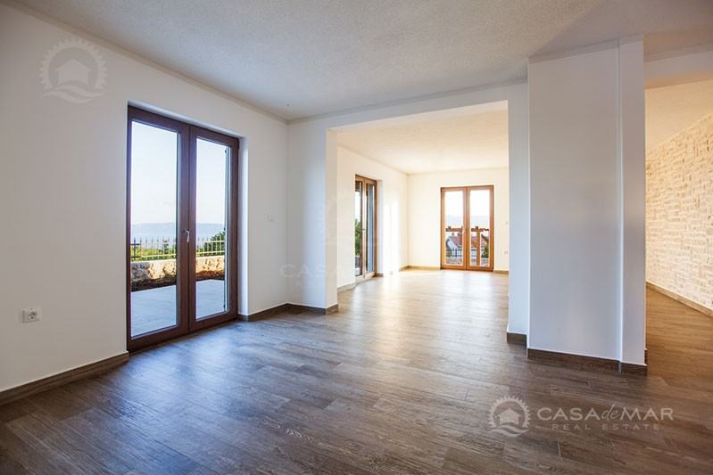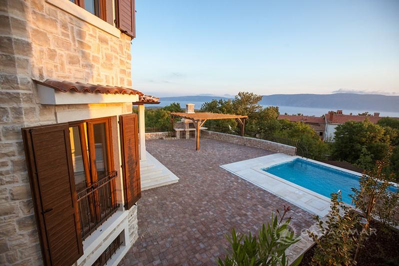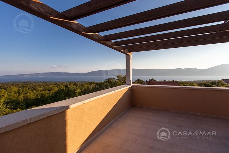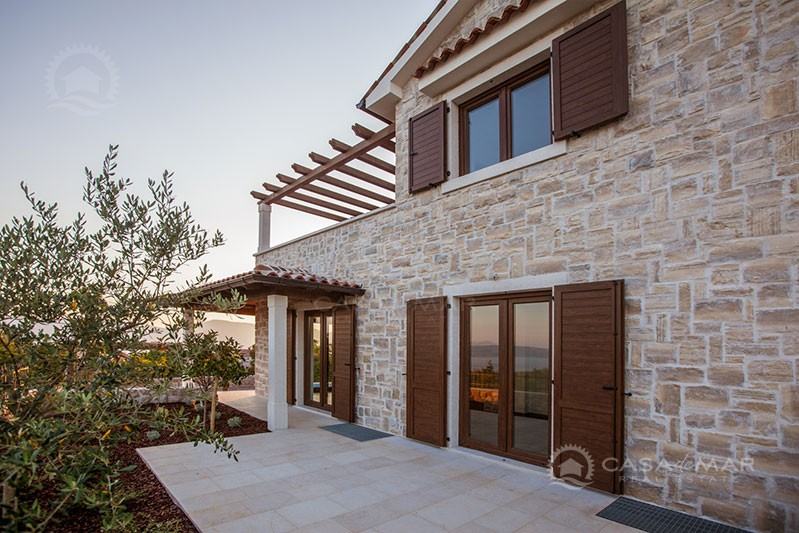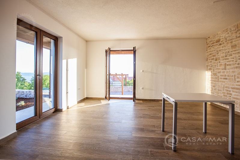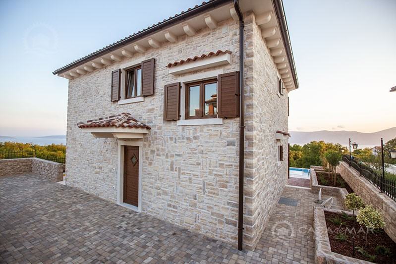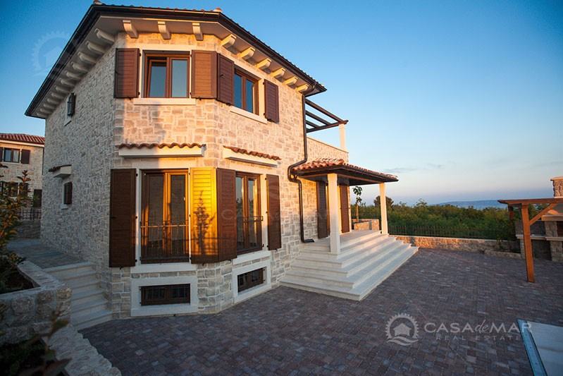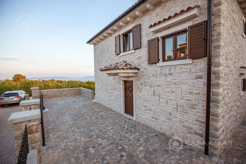 Otok Krk, šire područje, nova luksuzna kamena kuća na prodaju, 198 m2 s okućnicom od 320 m2, panoramski pogled na more.