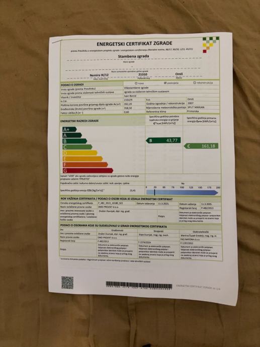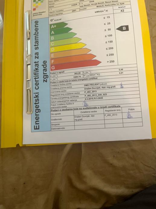 Uporabna dozvola, lokacijska informacija i Energetski certifikat B koji vrijedi do 2035 godine.