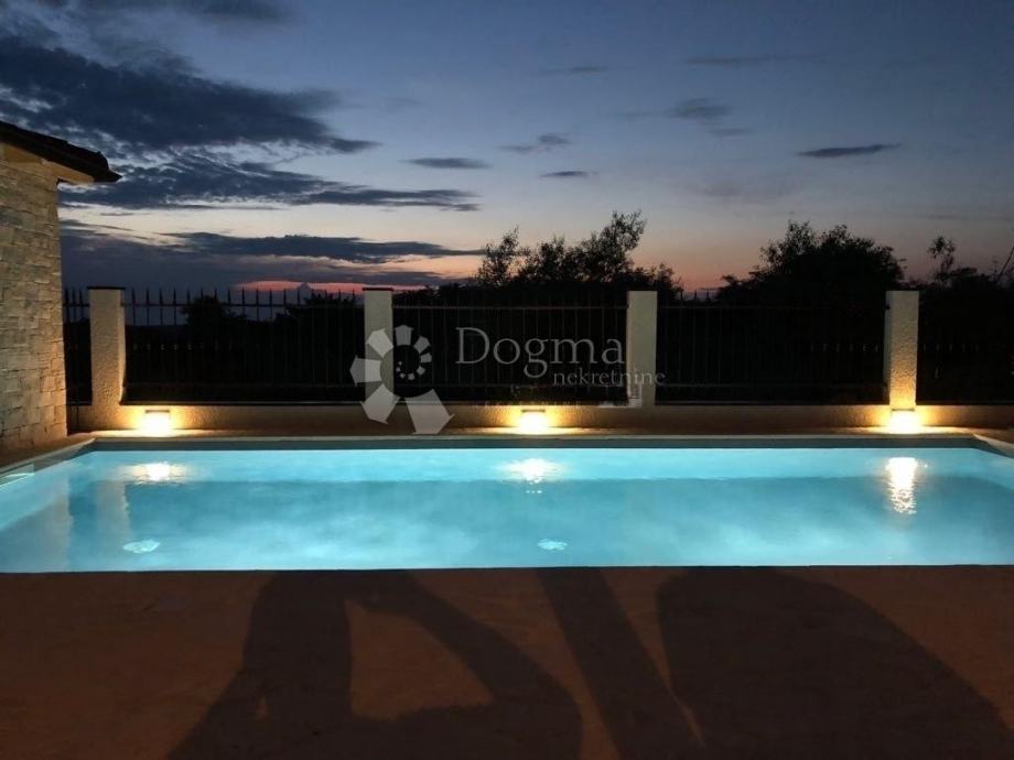 Okućnica je u potpunosti ograđena i uređena, s automatskim sustavom navodnjavanja. U sklopu dvorišta nalazi se grijani bazen, vanjski jacuzzi i sauna, što ovu nekretninu čini idealnom za potpuni odmor i opuštanje. Osigurano je i više parkirnih mjesta.