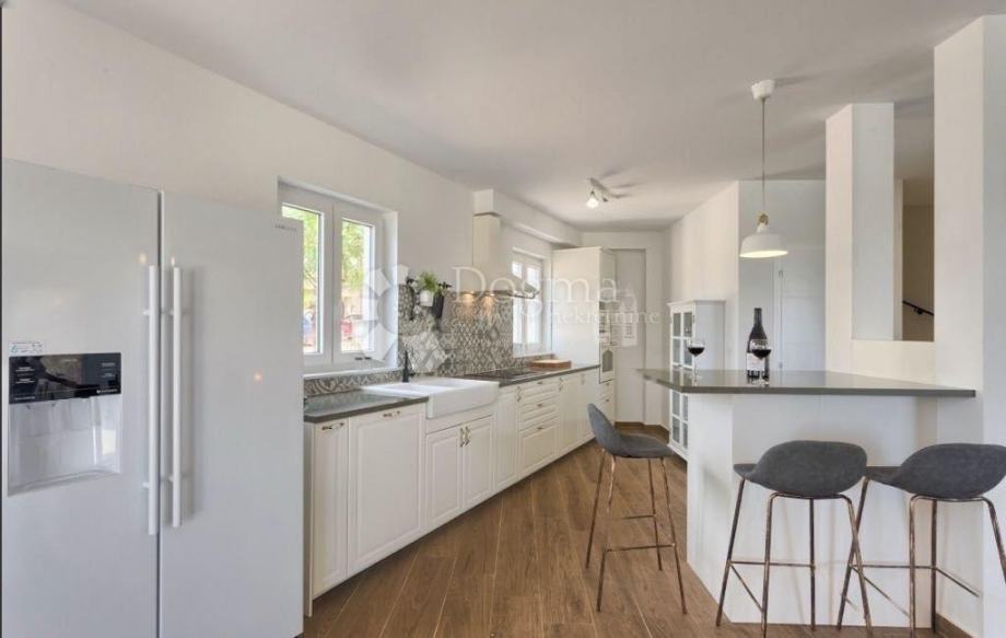 Vila se prostire na dvije etaže, ukupne neto površine 188,48 m², a smještena je na hortikulturno uređenoj okućnici površine 383,77 m². U prizemlju otvorenog tipa nalazi se prostran dnevni boravak s kaminom, blagovaonica i potpuno opremljena moderna kuhinja, spavaća soba s vlastitom kupaonicom te gostinjski toalet. Iz dnevnog dijela izlazi se na natkrivenu terasu s vanjskom kuhinjom, prostorom za roštilj i blagovanjem, savršenim za druženja tijekom cijele godine.