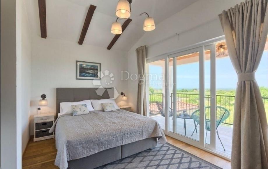 Na katu su smještene tri elegantno uređene spavaće sobe, svaka s vlastitom kupaonicom, a glavna spavaća soba ima izlaz na natkrivenu terasu s pogledom na okolnu prirodu. Sve prostorije u vili su klimatizirane, a zahvaljujući kvalitetnoj izolaciji i grijanju, vila je pogodna za boravak tijekom cijele godine.