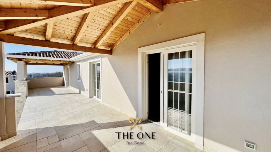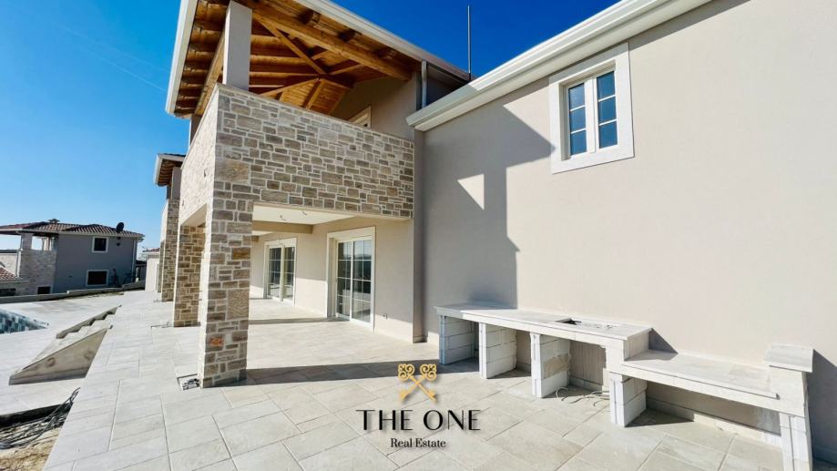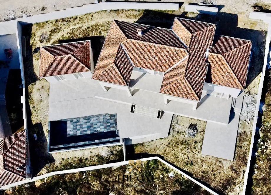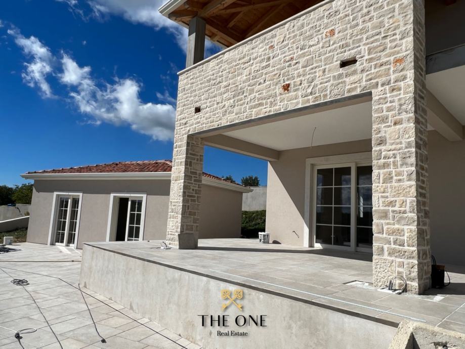 Na vrhu blage uzvisine, smještena je impozantna luksuzna vila s očaravajućim pogledom. Kombinacijom tradicionalnih elemenata i moderne arhitekture postignut je svevremenski dizajn koji se savršeno uklopio u netaknutu prirodu koja okružuje vilu.