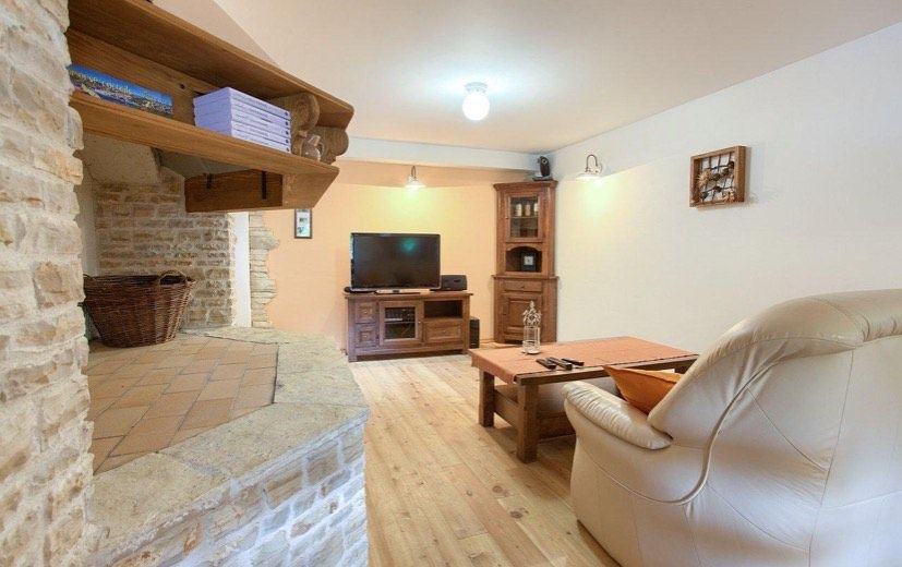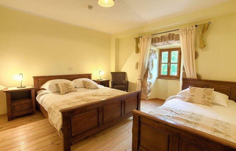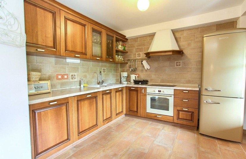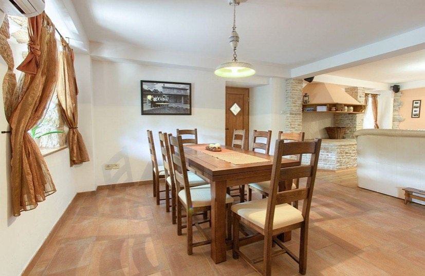 Luksuzna kamena villa, iz 1856.godine, sa bazenom i prekrasnom okućnicom. -U prizemlju se nalaze prostrana kuhinja, veliki dnevni boravak uz zasebno mjesto za gledanje televizije, toalet sa tuš kabinom i izdvojenim WC-om te prostorija za zabavu s igrama (stolni nogomet, pikado i sprave za vježbanje). - Na katu su dvije dvokrevetne sobe i jedna trokrevetna, veliki toalet sa WC-om i kadom za tuširanje. - Kuća ima podno grijanje te klimu u svim prostorijama. - Svaka soba ima televizor sa satelitskim prijemnikom. - Okoliš je uređen u mediteranskom duhu i opremljen automatskim navodnjavanjem. - Parkiralište je osigurano za dva automobila. - Bazen je površine 23 m2, obložen keramičkim mozaikom. Okućnicu čini građevinsko zemljište ukupne kvadrature oko 4500 m2. Moguća je gradnja do još dvije stambene zgrade, a na istoj se već nalazi legalizirana građevina, pa je moguće i renovirati istu.