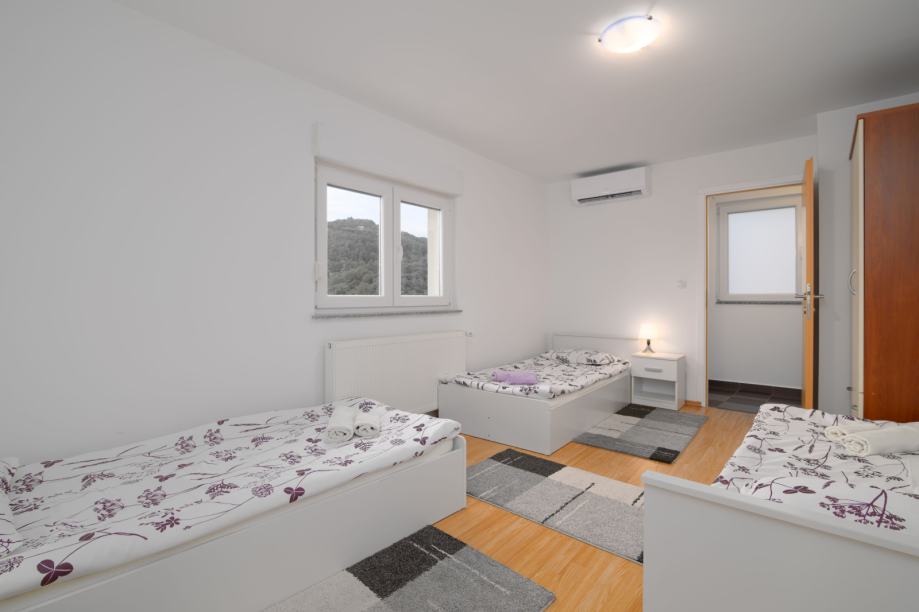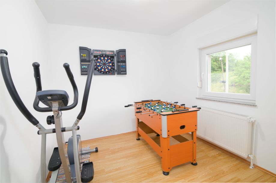 Gornja etaža: pet prostorija, uključujući tri spavaće sobe, igraonicu i spremište.