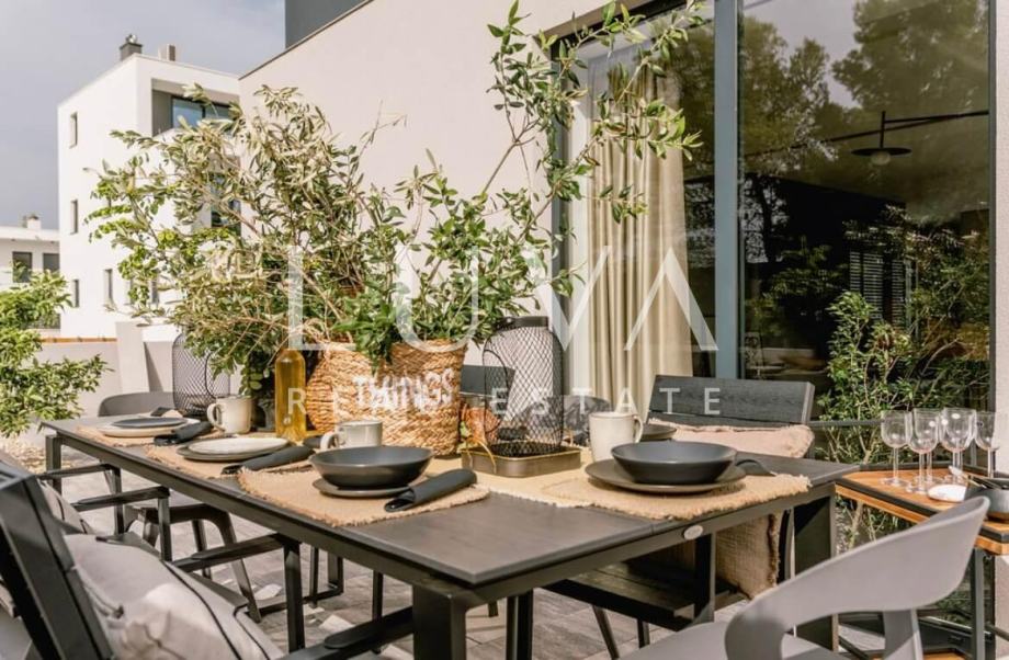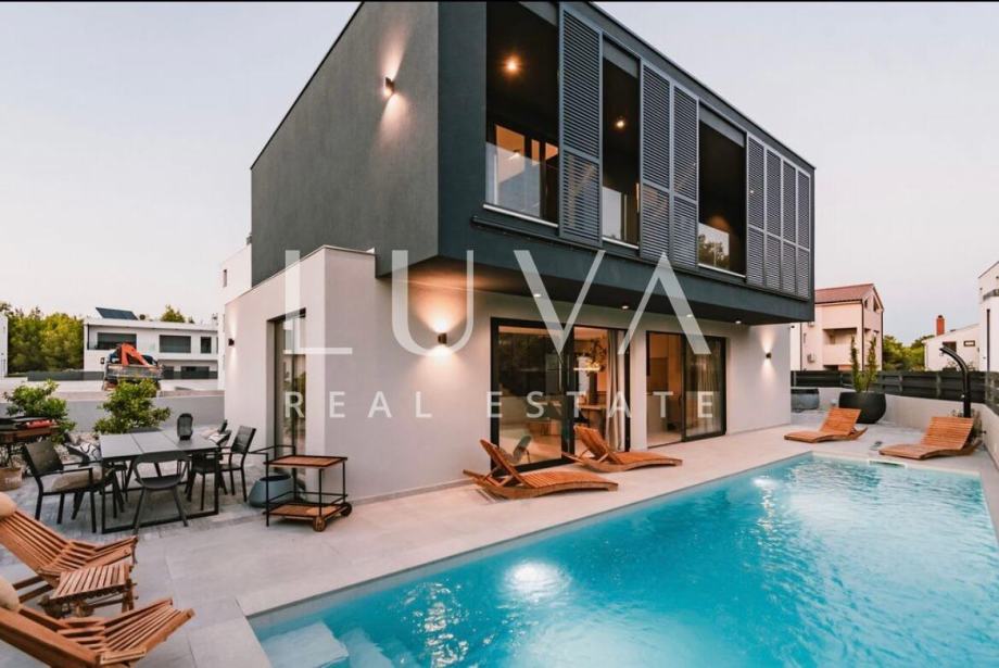 Prodaje se luksuzna kuća s bazenom u malom mirnom mjestu Srima koje se nastavlja na popularno mjesto Vodice na dalmatinskoj obali. Kuća je izgrađena na potpuno ograđenom posjedu površine 200 m2 u neposrednoj blizini mora. Kuća je dovršena 2018. godine, površine je 200 m2 i prostire se na 2 etaže te je uređena u modernom stilu. Ispred kuće se nalazi vanjski bazen, a sa strane se nalaze Jacuzzi i stol za blagovanje.