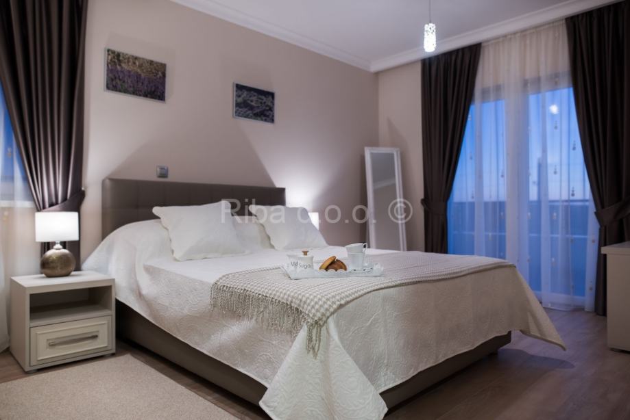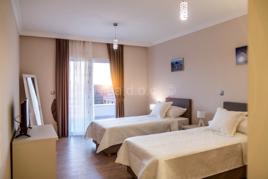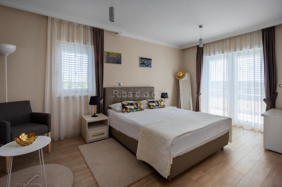Na katu su smještene tri spavaće sobe, svaka soba ima svoju kupanu i veliki ugradbeni ormar. Iz svake sobe se izlazi na veliku terasu s koje se vidi i more u Sukošanu. Tu je smještena i praonica rublja s svojoim terasom.