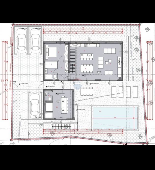 Zamišljena je kao obiteljska vila s bazenom i ljetnom kuhinjom.