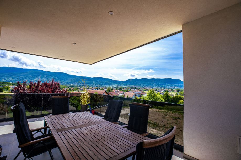 U sklopu kuće nalazi se prostrani vrt, užitak za oči, a tu su i balkon, garaža te ukupno pet parkirnih mjesta. Položaj kuće omogućuje zadivljujući panoramski pogled, dok blizina parka, šume, autobusa, škola i trgovina jamče praktičan život.