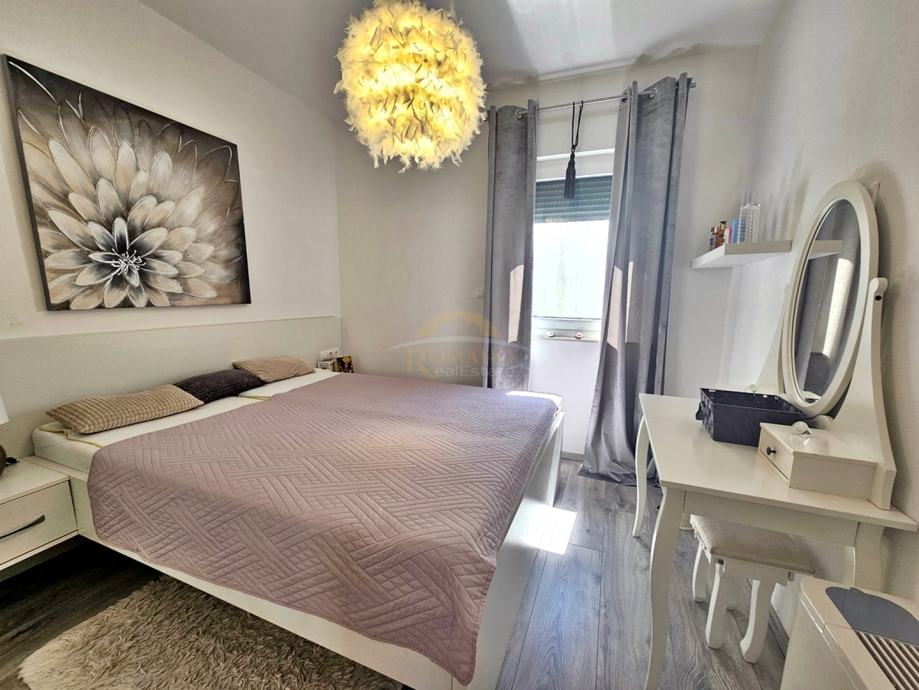 U svim sobama nalaze se bračni kreveti kao i namještaj koji je izrađen po mjeri. Svi materijali i namještaj u stanu su vrhunske kvalitete.
