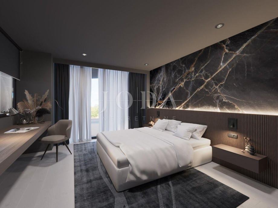 U okolici Labina na prodaju je luksuzna kuća u izgradnji brutto površine cca 500m2.U sklopu prizemlja planirana je open space kuhinja sa blagavaonom, prostranim dnevnim boravkom, jedna spavaća soba sa kupaonom, fitness prostorija sa saunom i vešeraj. Na prvom katu kuće nalazi se još tri spavaće sobe sa kupaonom, svaka soba pruža izlaz na terasu sa prekrasnim pogledom na okolno zelenilo.Nudi se mogućnost uređenja interijera prema vlastitim željama. U kući je postavljeno podno grijanje, u prizemlju u cijeloj površini, na katu u kupaonama, a sobe će se grijati preko klima uređaja (ugrađene u strop) preko dvije dizalice toplane plus dodatna za vanjski bazen od 80m2. Kuća nudi mogučnost maksimalnog uživanja i opuštanja,