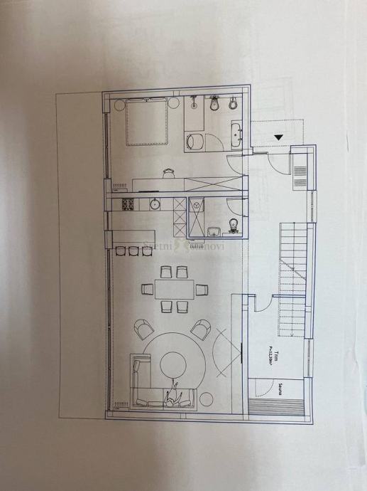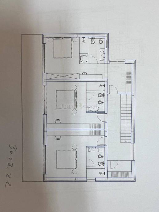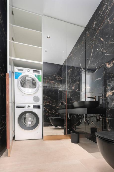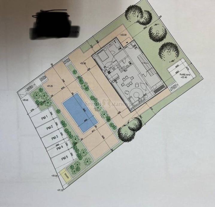 The ground floor consists of a living room, a dining room and a kitchen, a bedroom, a bathroom and a storage room, and there is a beautiful terrace with landscaped surroundings and a swimming pool and an outdoor barbecue area. In the ground floor area there is also the already mentioned apartment with bathroom and bedroom (separate entrance). On the first floor, there are three bedrooms with their own bathrooms, a hallway, a sauna area, gym area, two balconies and a loggia.