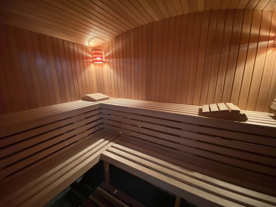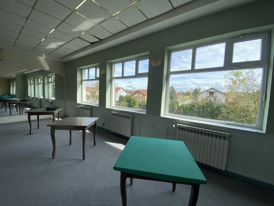 U prizemlju, posebni ulaz na recepciju, teretana, 2 dodatne prostorije, teretana (postoje kompletne sprave za teretanu), sauna, solarij, svlačionice s tuš kabinama, stepenište za na kat, soba, velika plesna dvorana, šank, 2 wc-a..