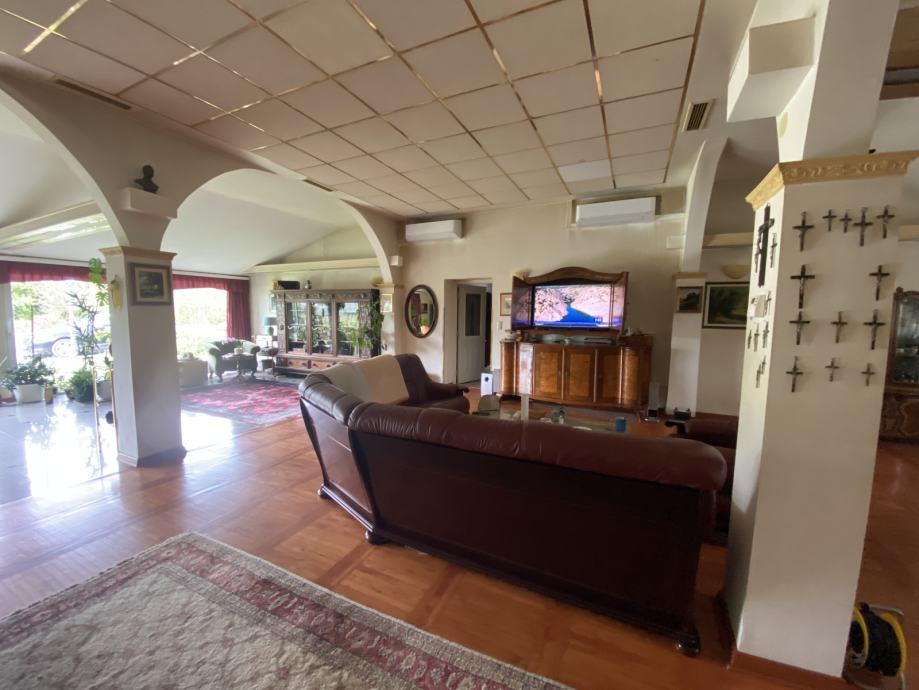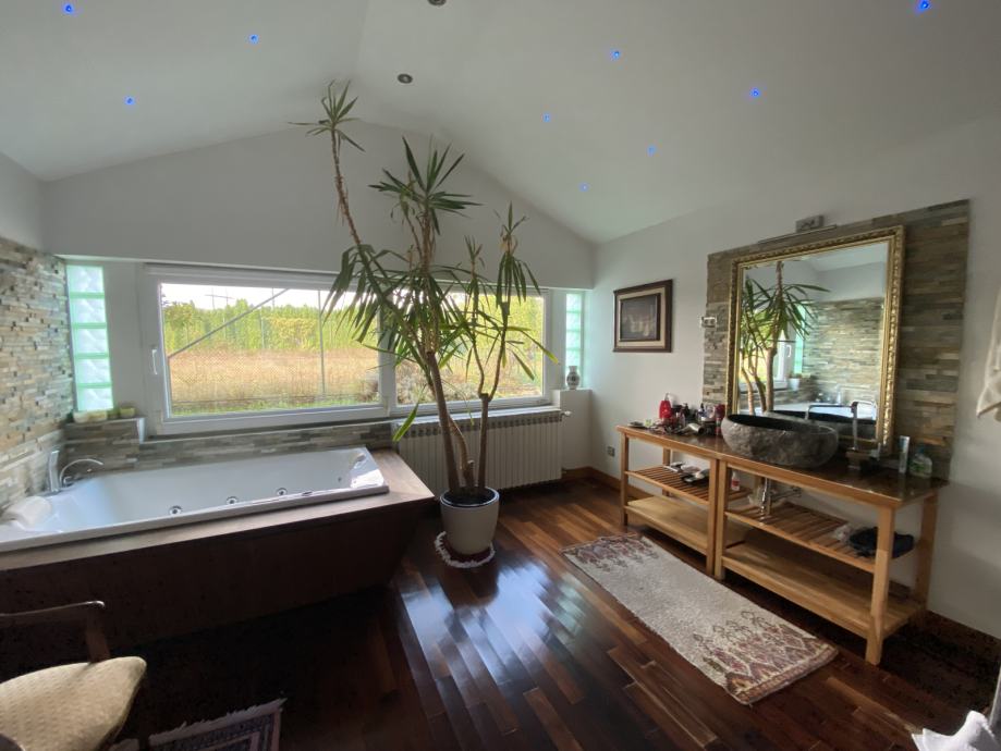 Ogromni dnevni boravak od 130 m2, sa stilskim namještajem i kaminom, kuhinja, smoćnica, 3 spavaće sobe, walk in ormar, radna soba, kupaonice, wc-i, vešeraj...