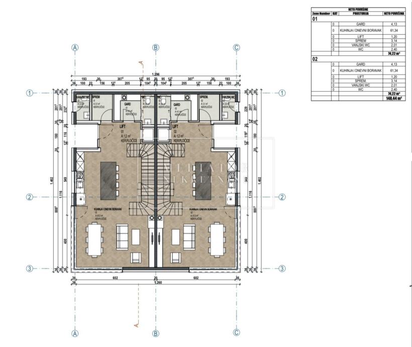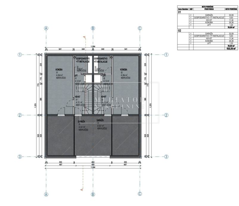 U ponudi Mediator nekretnina nalazi se luksuzna dvojna kuća u Kostreni, s unutarnjim dizalom koje povezuje sve katove kuće.