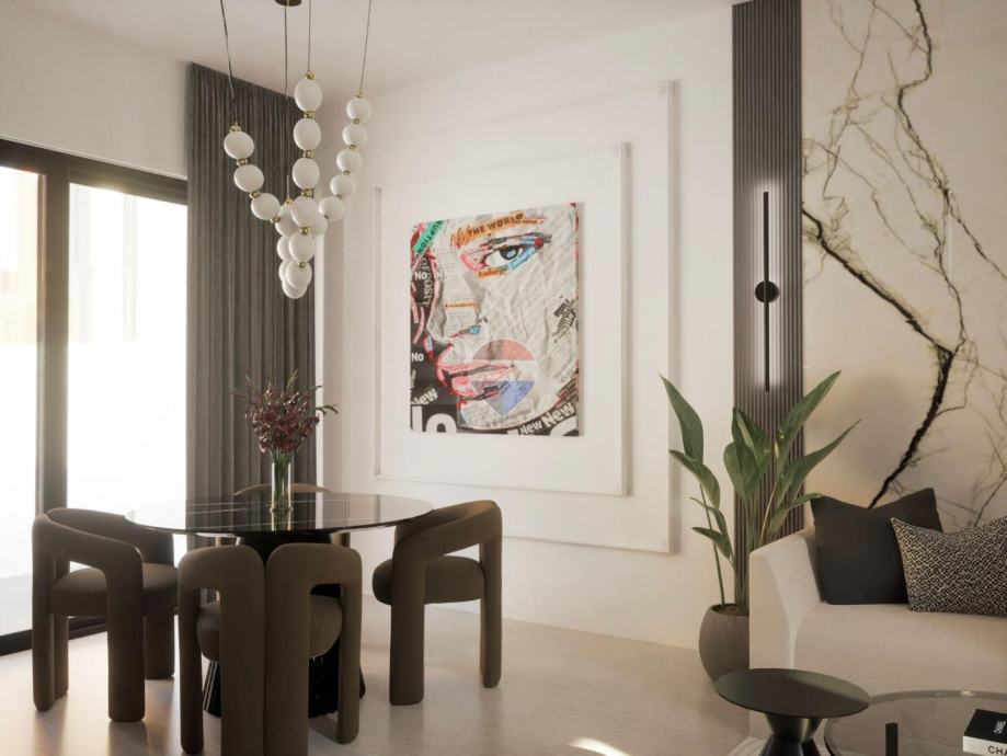 - mogućnost opremanja dizajnerskim namještajem uz doplatu, uključujući uređenje interijera s poznatom dizajnericom uz izbor između dva stila uređenja