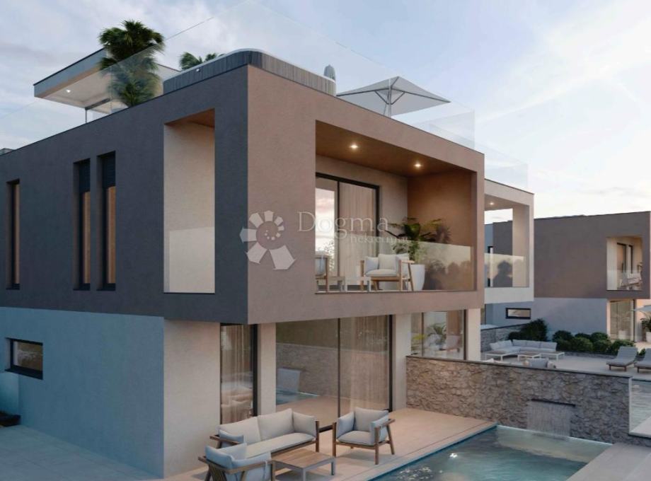Vodice – moderna duplex kuća s bazenom i panoramskim pogledom na more