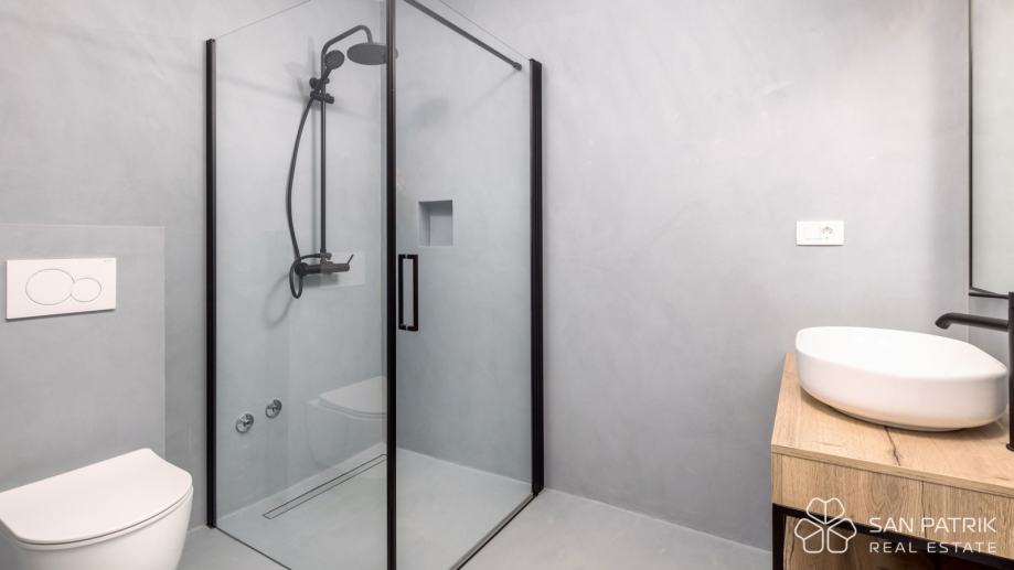 Vila MD - prizemlje + kat - stambena površina 200,00 m2 (4 spavaće sobe + 4 kupaonice + 1 WC) + 3 terase + bazen sa sunčalištem + vrt + vanjska parking mjesta, na parceli površine 727 m2 = 1.500.000 EUR (s uključenim namještajem)