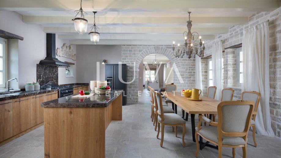 Prodaje se luksuzna vila s bazenom u malom mirnom mjestu Ladići blizu Kanfanara. Kanfanar je odlično prometno povezan s autoputom kroz Istru, a u blizini se nalazi i poznati grad Rovinj. Ova luksuzna vila je izgrađena 2016. godine, površine je 297m2 i prostire se na 2 etaže. Vila je građena u tradicionalnom istarskom stilu u kamenu s kosim krovom s crijepom. Osim eksterijerom i interijerom dominira tradicionalan stil s kamenim zidovima, drvenim gredama i rustikalnim drvenim namještajem. U prizemlju vile se nalazi prostrani dnevni boravak s kaminom koji mu daje dodatni šarm, potpuno opremljena kuhinja s dizajnerskim aparatima te veliki stol za blagovanje. Ispred kuće se nalazi vanjski bazen, a pored njega se nalazi natkrivena terasa s roštiljem i stolom za blagovanje. Vila ima 4 spavaće sobe s vlastitim kupaonicama i prodaje se potpuno namještena i opremljena. Vila je već nekoliko godina u funkciji turističkog najma, a osim ove vile na prodaju su i sestrinske vile pa je moguća kupnja više sestrinskih vila kao investicija u turizam u Hrvatskoj.