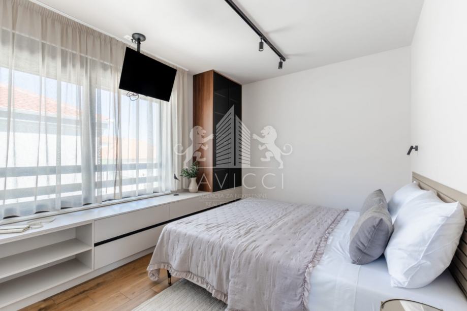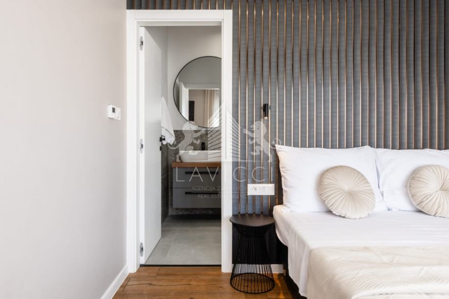 Dodatna vrijednost ove nekretnine je krovna terasa površine cca 75 m², osmišljena kao ekskluzivna zona za opuštanje i druženje, s prekrasnim panoramskim pogledom na more, uz izvedene pripreme za jacuzzi, što dodatno podiže razinu luksuza i privatnosti.