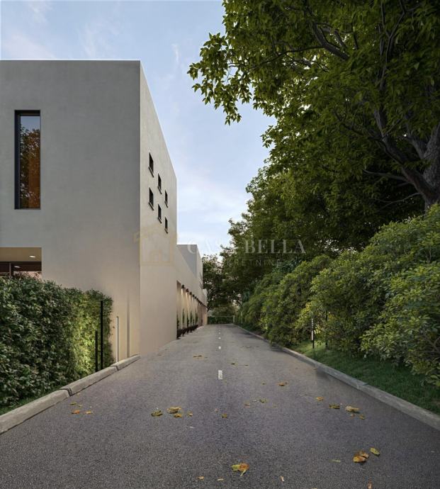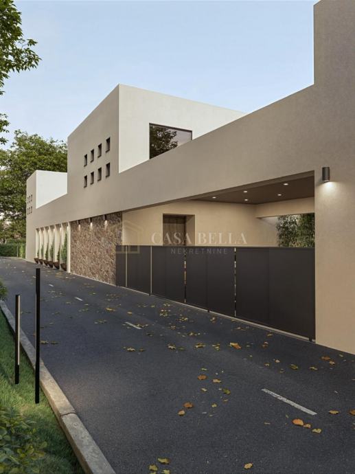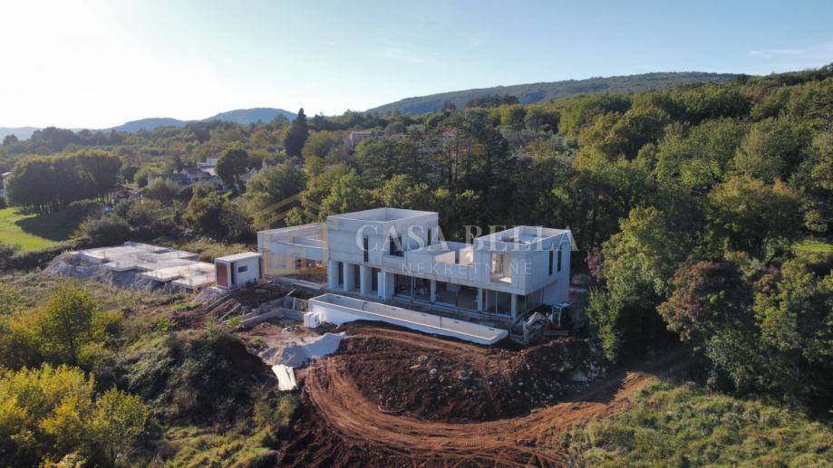 Casa Bella iz ponude izdvaja luksuznu samostojeću dvoetažnu vilu smještenu u Sovinjaku, na mirnoj lokaciji u blizini Buzeta, okruženu prirodom i zelenilom. Riječ je o novogradnji u aktivnoj fazi gradnje, ukupne površine 320 m², raspoređene na prizemlje i kat.