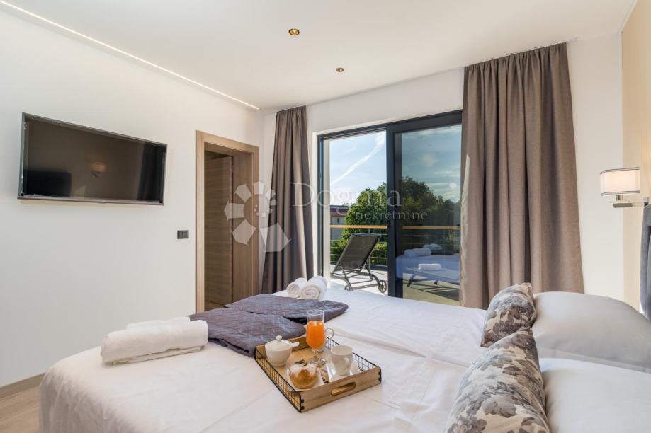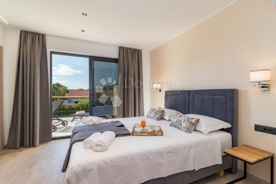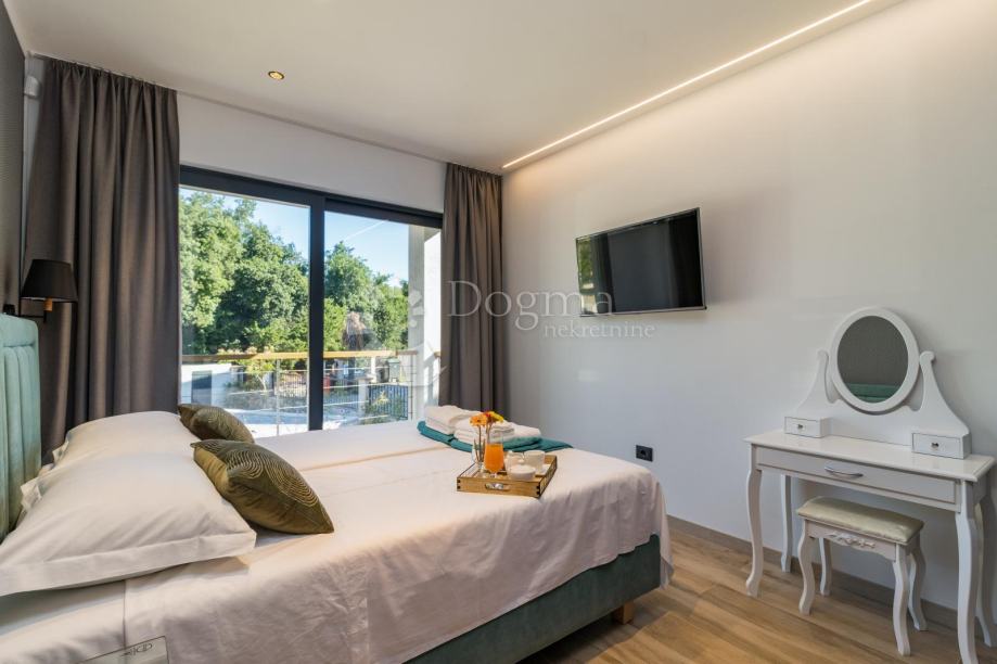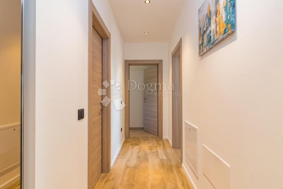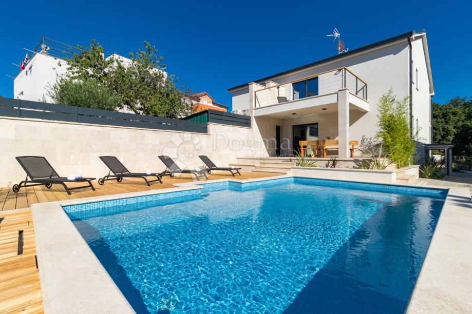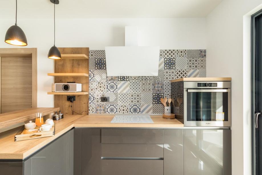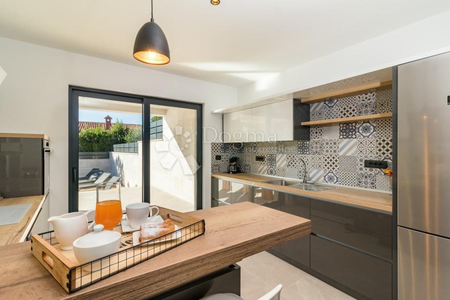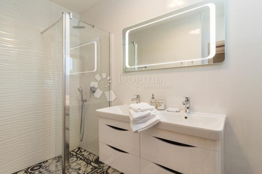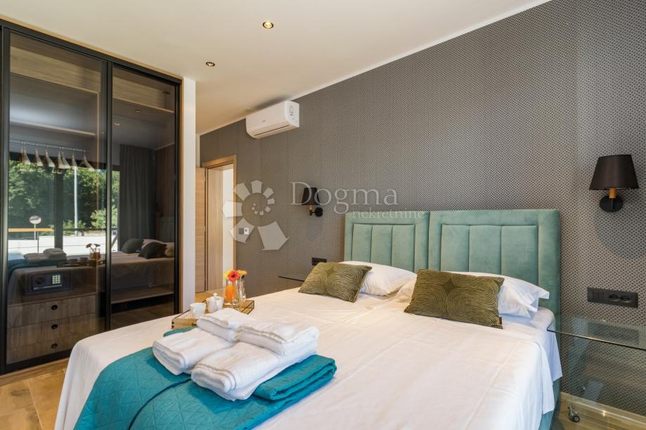 Ukupna stambene površina je 293 m² te se sastoji od prizemlja i kata. U prizemlju nalazi se prostrana moderna kuhinja, vrhunski dizajnirana i rađena po mjeri, prostrani dnevni boravak za maksimalno opuštanje i uživanje u dobrom društvu, fitness zona te izlaz na veliku popločenu terasu na kojoj se nalazi grijani bazen od 40 m²!