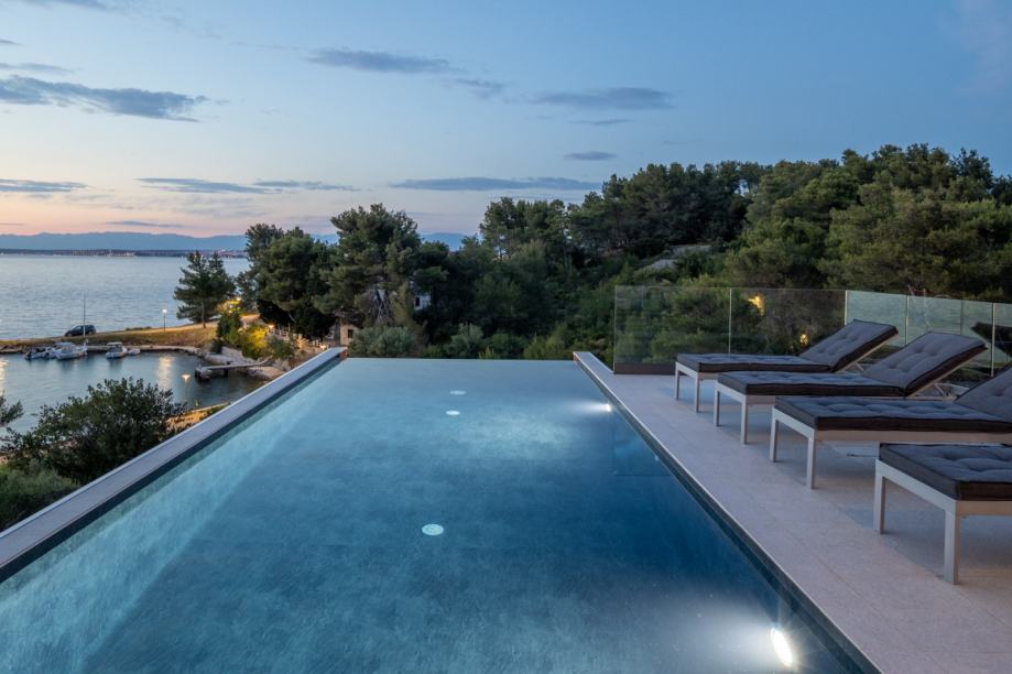 Luksuzna moderna vila prvi red do mora s bazenom i pogledom na Zadar (prodaja)