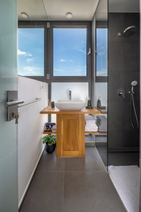 U prizemlju se nalaze i praonica rublja te gostinjski WC, dok kat sadrži tri luksuzne spavaće sobe, svaka s vlastitom kupaonicom, klimom i prekrasnim pogledom na more.