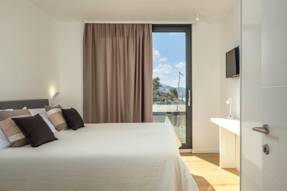 This modern seafront property is positioned first row to the sea, only a few steps from a beautiful beach and the crystal-clear Adriatic waters.