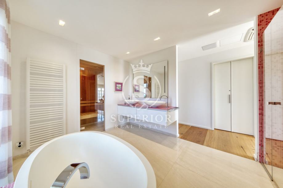 Vila se odlikuje bezvremenskom arhitekturom, vrhunskim materijalima i naprednim tehničkim sustavima. Jugozapadna orijentacija osigurava obilje prirodne svjetlosti tijekom cijelog dana, dok pažljivo birane završne obloge stvaraju osjećaj profinjenog, toplog luksuza.