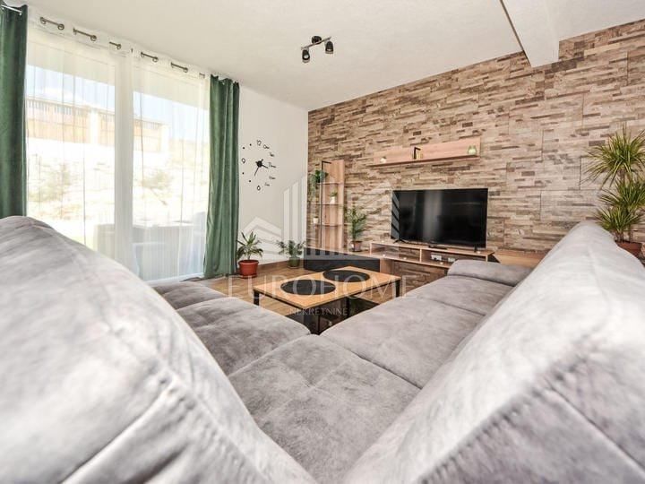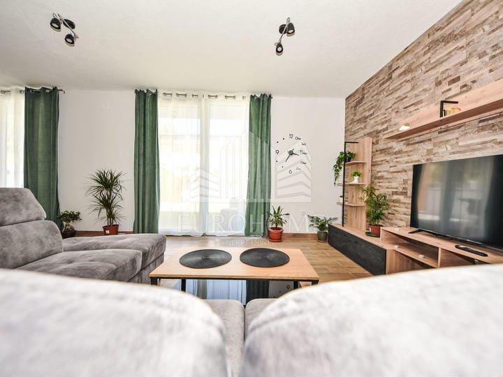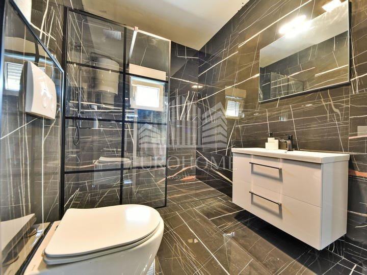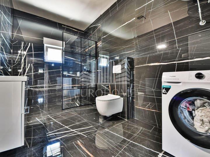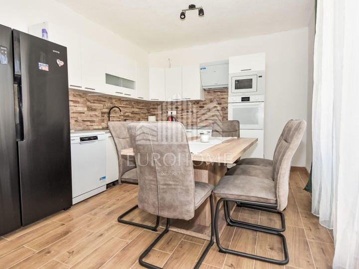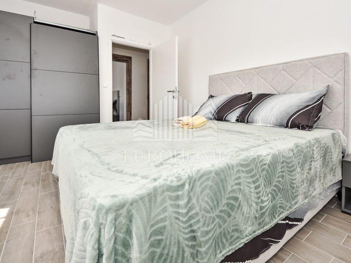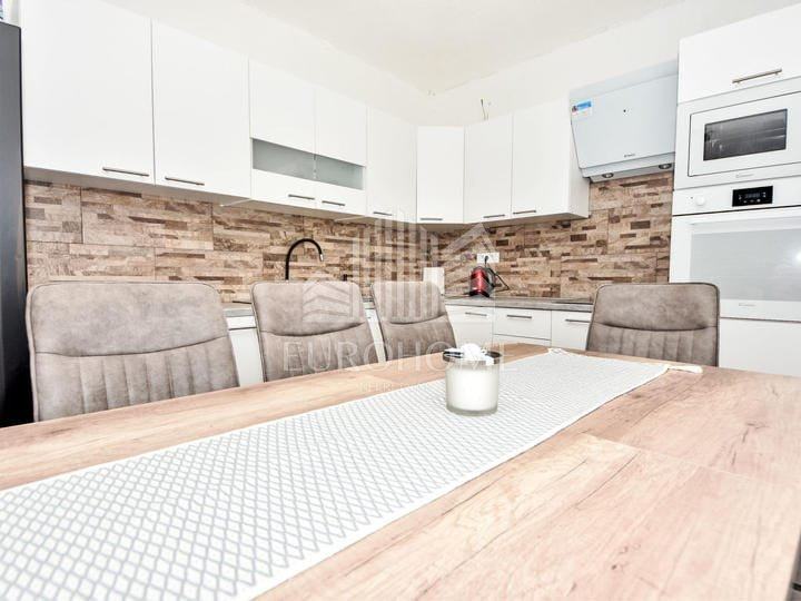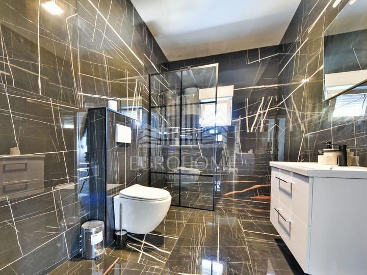 Kuća je završena i namještena trenutno je u turističkom najmu do kraja rujna , kuća posjeduje privatni bazen kao i sunčalište, dvije terase roštilj, vanjski šank
