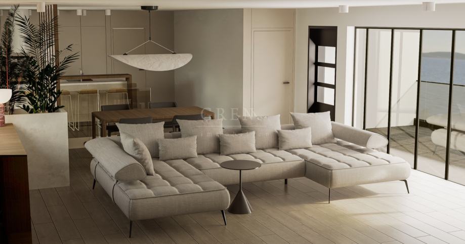Stan se sastoji od prostranog dnevnog boravka, moderne kuhinje s blagovaonicom, tri udobne spavaće sobe, 2 elegantne kupaonice i gostinjskog WC-a, a zatvorena unutarnja površina iznosi 102 m2. Dodatnu vrijednost pružaju dvije prostrane loggie, svaka veličine 22,42 m2, savršene za uživanje u spektakularnom pogledu i mediteranskom ambijentu.