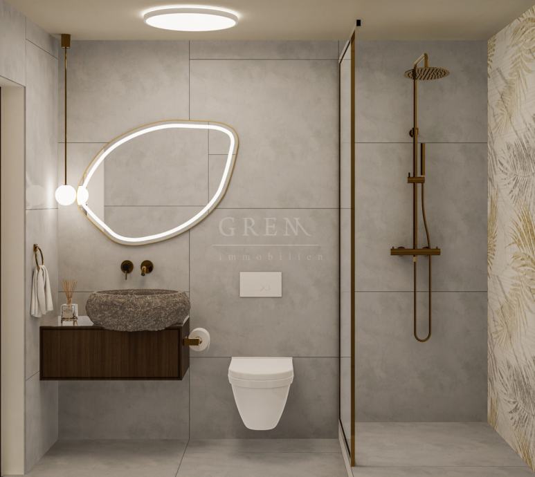Veliki apartmani prodaju se bez namještaja. Kupaonice će biti opremljene modernom Hansgrohe opremom. Kod rane kupnje moguće je izvršiti izmjene prema željama klijenta.