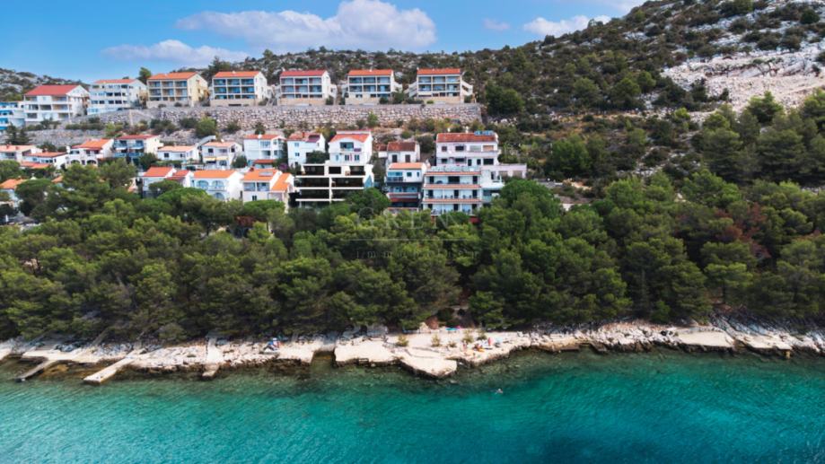 Prodaje se luksuzni duplex prvi red do mora u mjestu Drage, Pakoštane, s nevjerojatnim pogledom na Jadran i Kornate. Ova ekskluzivna nekretnina smještena je u mirnom i odlično povezanom dijelu mjesta, idealnom za opuštanje i uživanje u prirodi.
