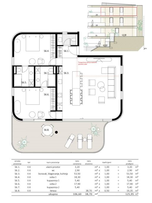 Prodajemo ekskluzivan apartman oznake J-S6 ukupne netto korisne površine 125,95m2, na 3/3. katu, urbane vile u izgradnji, 1. red do mora, u Ulici Kačjak.