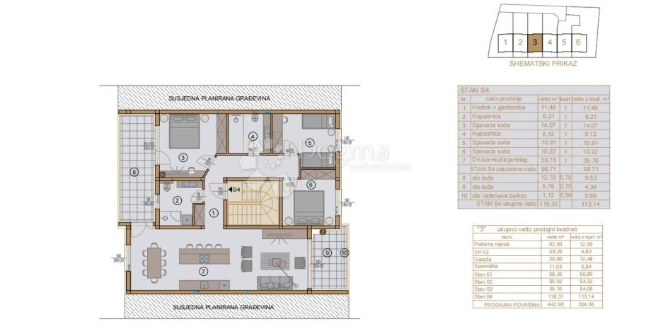 Nekretnini pripada i spremište te parkirno mjesto, a prodavatelj nudi dokup garažnog parkirnog mjesta.