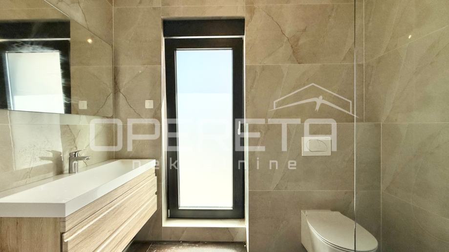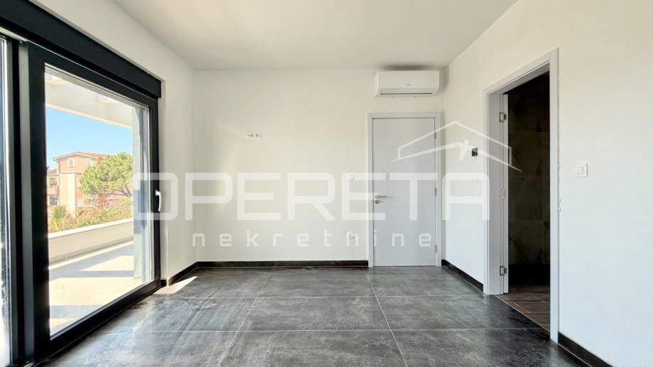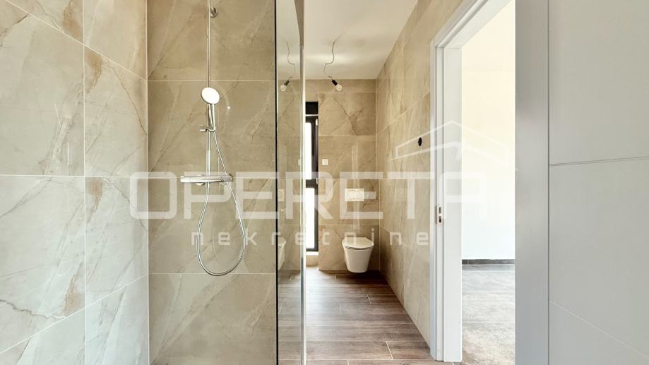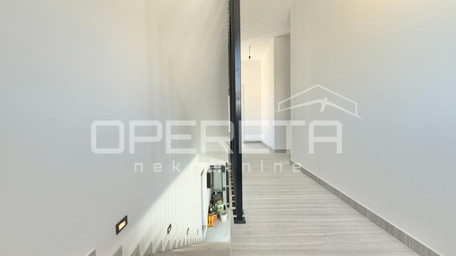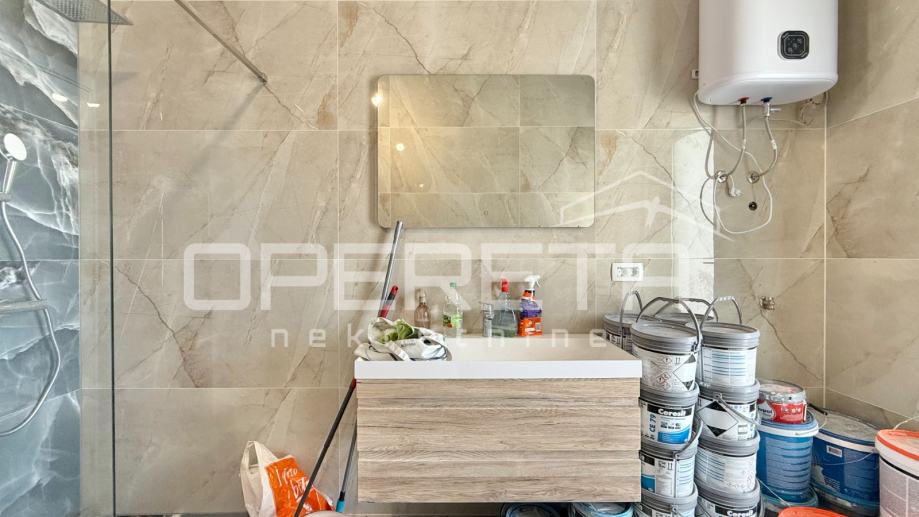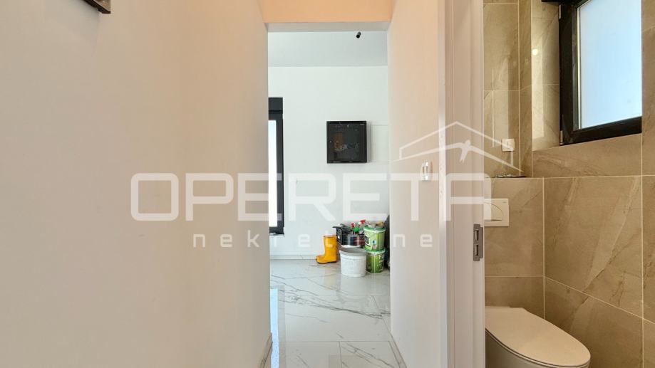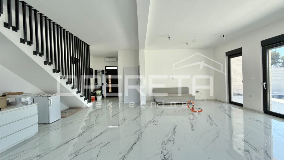 U prizemlju novogradnje se nalazi dnevni boravak sa kuhinjom i blagavaonicom, jedan toalet te terasa sa hidromasažnim bazenom površine 50m2.