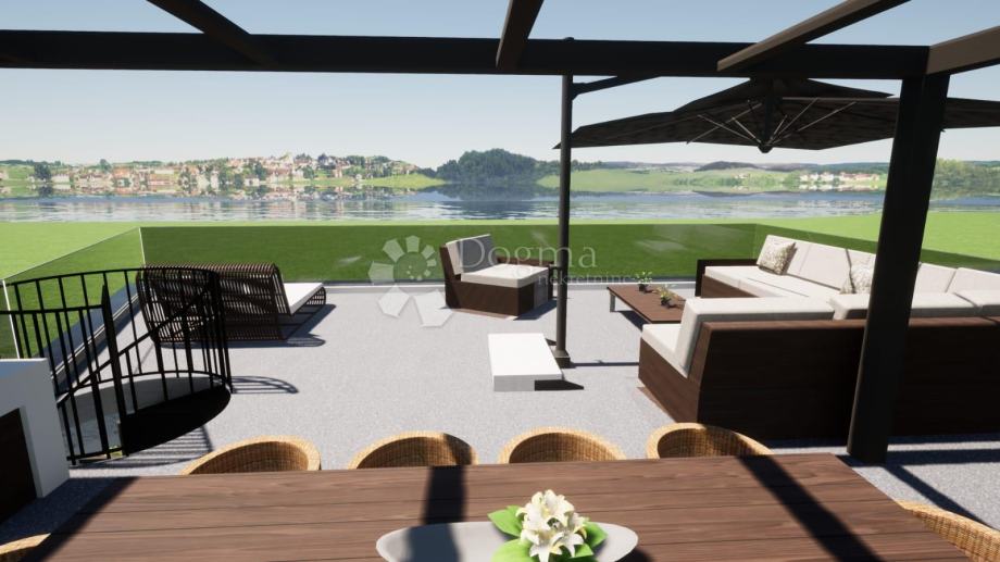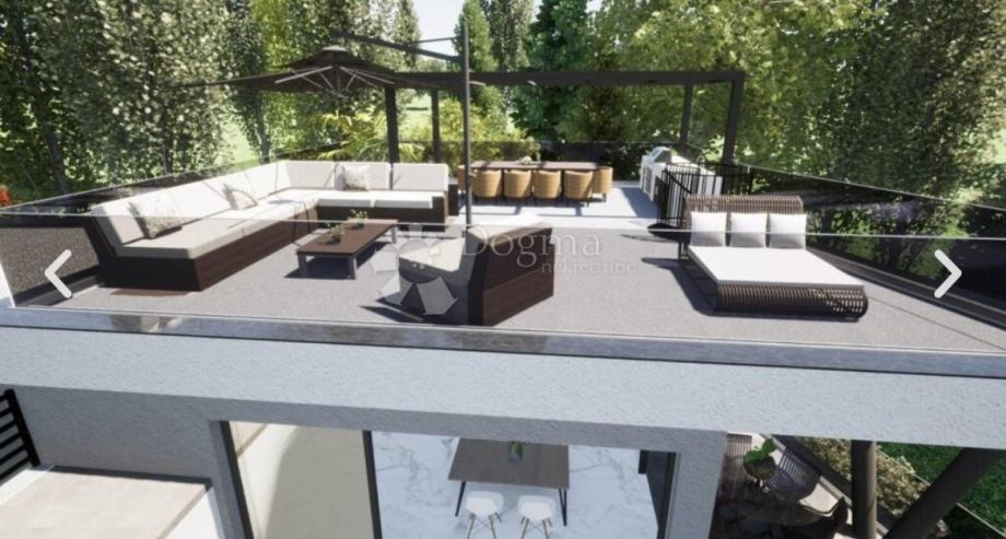 Ovaj ekskluzivni trosoban stan smješten je na drugom katu moderne vile s tri stambene jedinice, a svojim vrhunskim dizajnom i prvoklasnim materijalima pruža savršen spoj luksuza, privatnosti i komfora.
