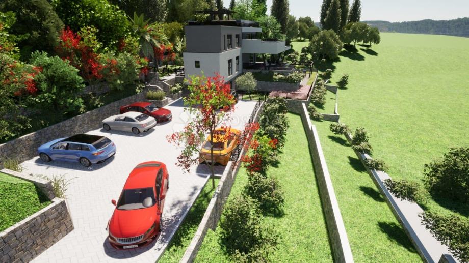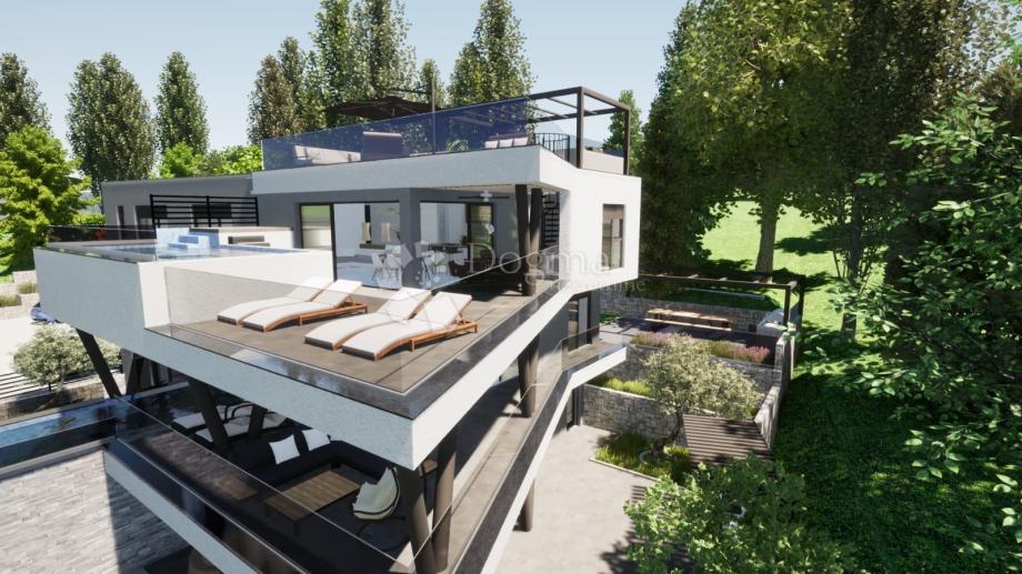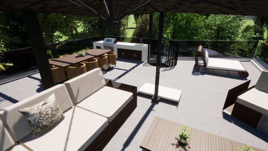 Predstavljamo vam vrhunsku nekretninu u luksuznoj novogradnji koja se nalazi na posljednjoj građevinskoj parceli, okružena netaknutom prirodom i sa spektakularnim panoramskim pogledom na Krčki most, otok Krk, Opatiju, cijelu Rijeku i more koje se proteže do horizonta.