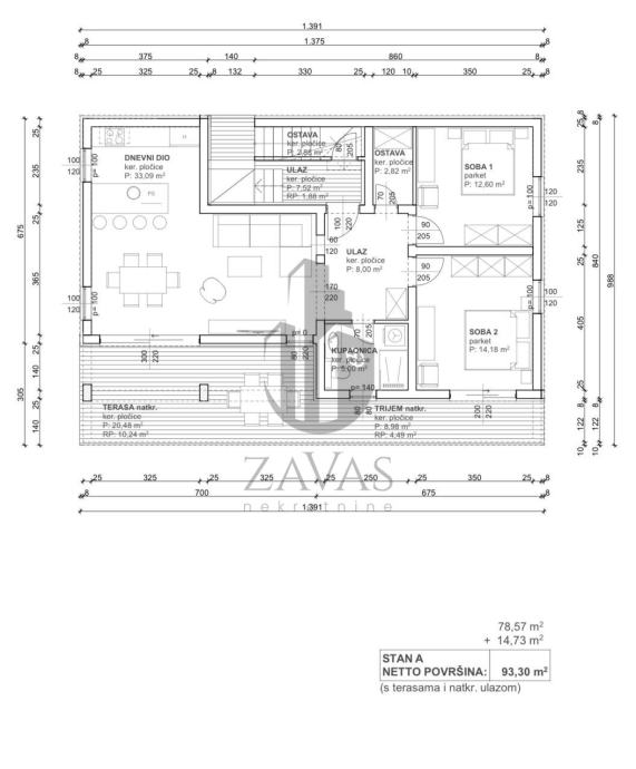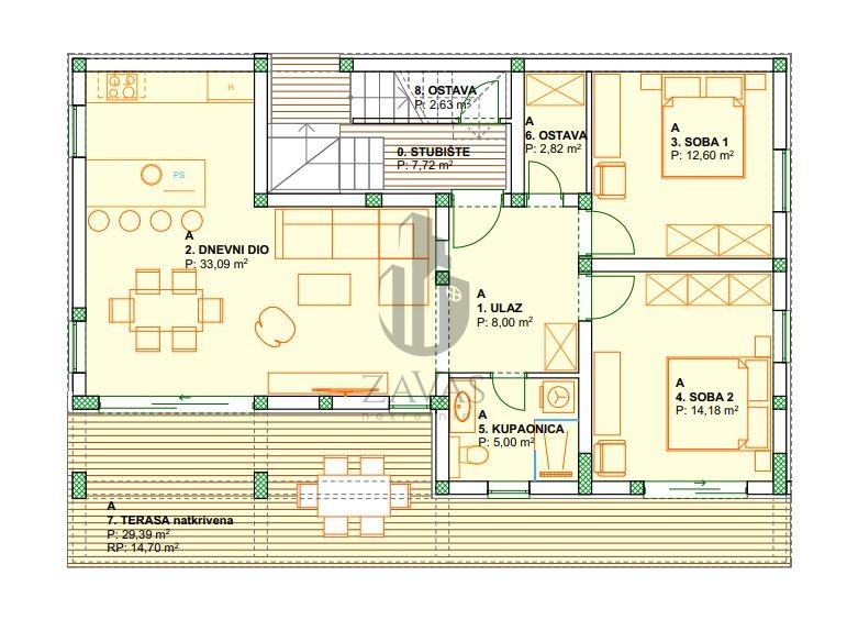 Natkrivena terasa: 29,4m2 x 0.5 = 14,70 m²