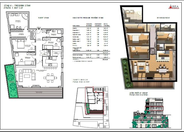 stan 6/1 kat (+1) = 145,47 m2 + terasa 36,50 m2 + 3 garažna parkirna mjesta