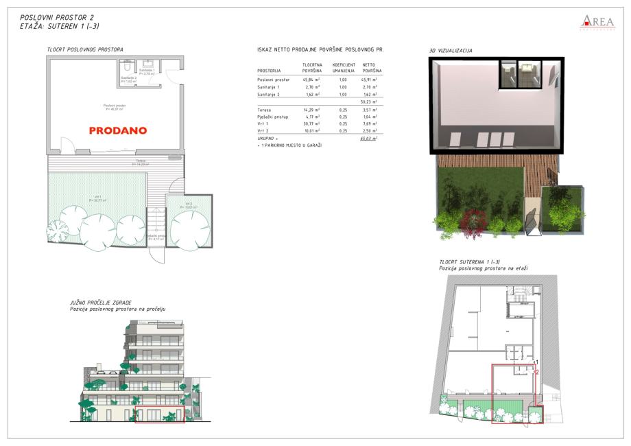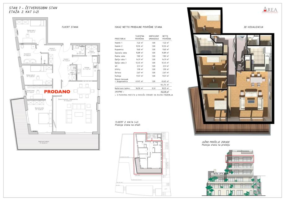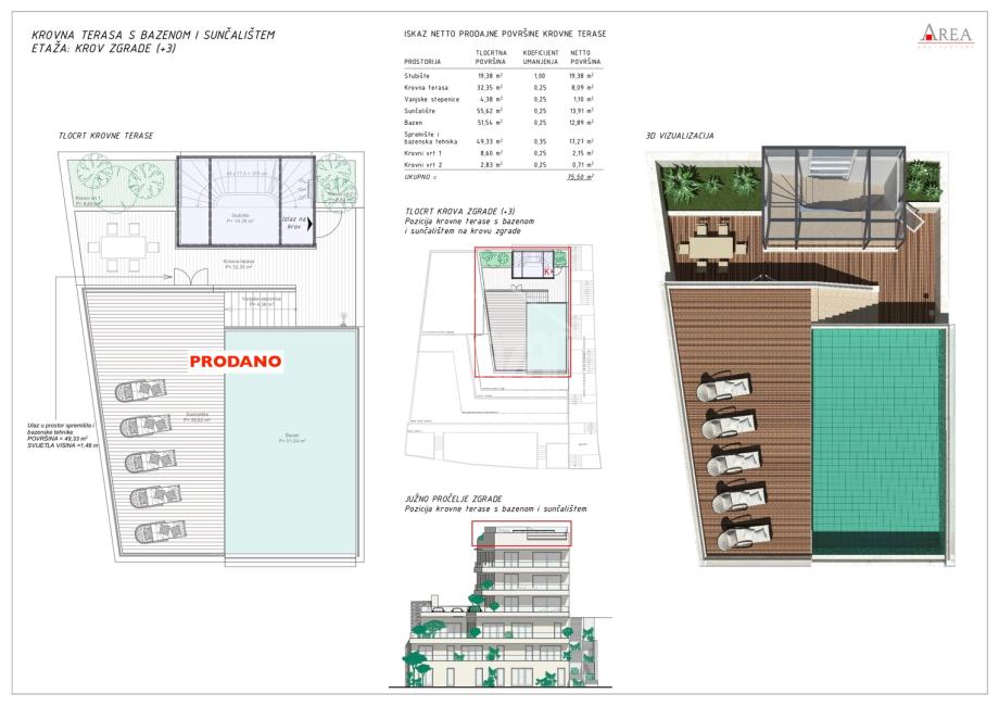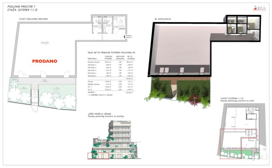 (stan 7/2 kat (+2) = PRODAN, krovna terasa/3 kat (+3) = PRODANA, poslovni prostori 1 i 2/suteren 1 (-3) = PRODANI)