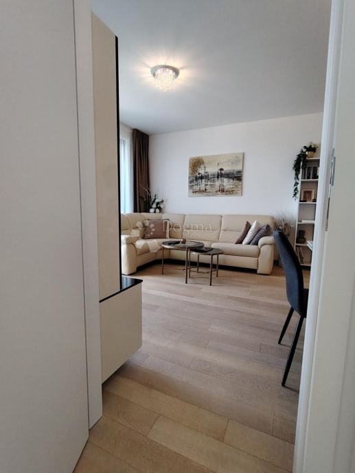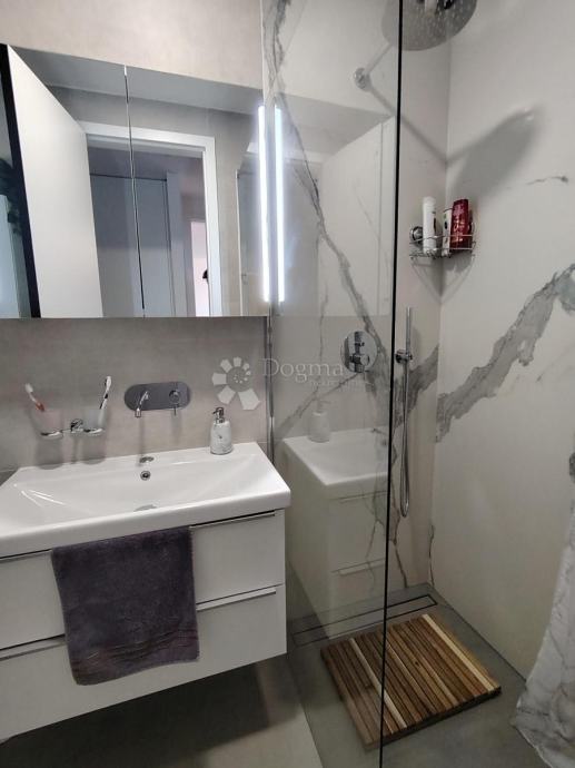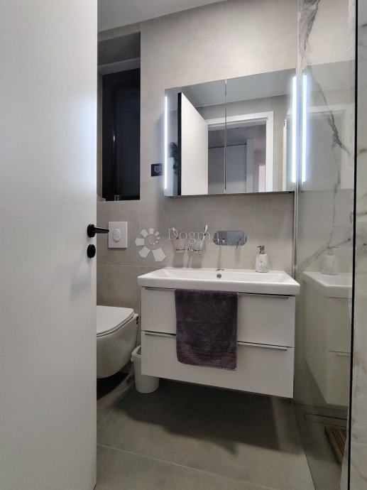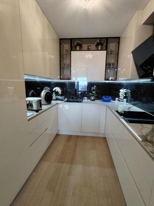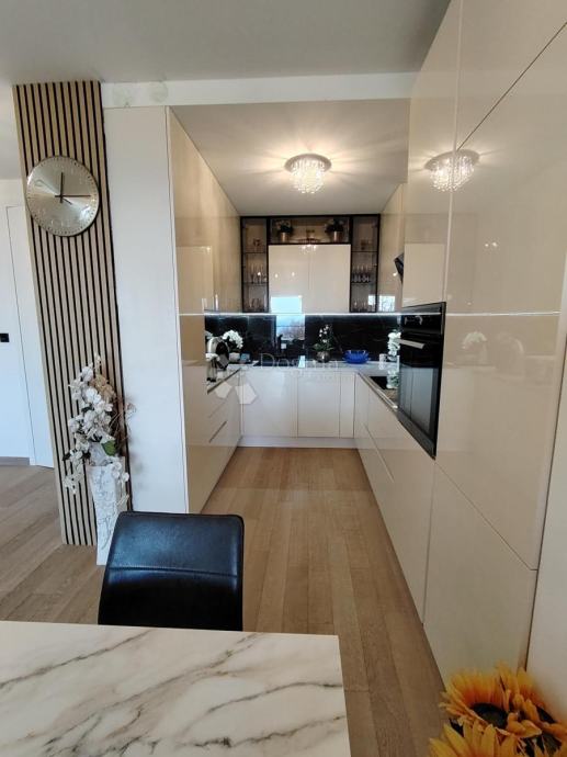 Primjetiti ćete da je ovaj izniman stan sinonim za kvalitetu materijala i završne obrade, najmodernije unutarnje opreme rađene po mjeri i izbora materijala; dvoslojni gotovi hrastov parket, PVC stolarija s troslojnim staklom i električnim roletama na daljinsko upravljanje. Zahvaljujući vrhunskoj vanjskoj stolariji, podnom grijanju putem dizalice topline i termo vanjskoj fasadi, ovom objektu pripada A+ energetski certifikat.
