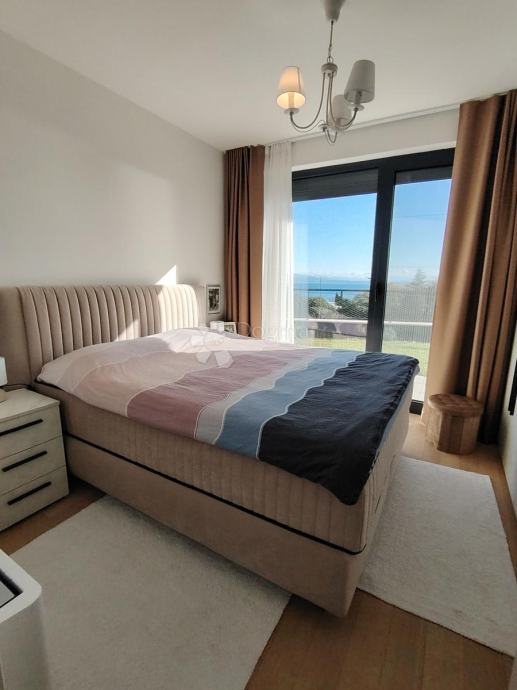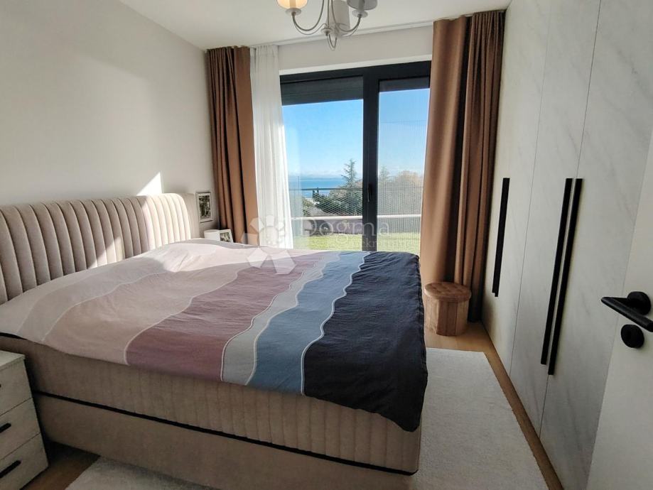 Diskretno smješten u zelenilu, ovaj luksuzni jednoetažni, prizemni stan nudi predivan panoramski pogled na more i Opatiju.